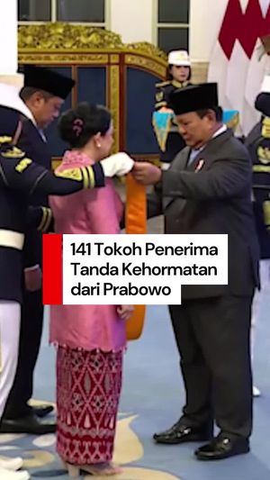 Presiden Prabowo Subianto memberikan tanda jasa dan kehormatan dalam rangka peringatan HUT RI kepada 141 tokoh. Mulai dari legislator, menteri, polisi, tokoh pers, hingga budayawan.