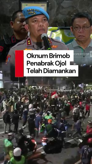 Seorang pengendara ojek online (ojol) tewas setelah ditabrak mobil Brimob di tengah aksi demo buruh di depan Gedung DPR/MPR. Atas peristiwa ini, 7 anggota Brimob telah diamankan.