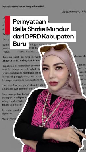 Aktris sekaligus politisi Bella Shofie umumkan pengunduran diri sebagai anggota DPRD Kabupaten Buru, Maluku dari Partai NasDem. Surat pengunduran itu rupanya telah ia ajukan sejak tanggal 14 Agustus 2025 lalu.