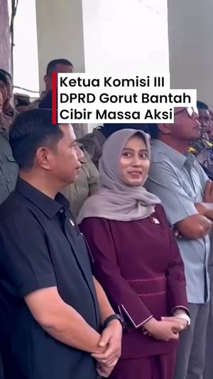 Ketua Komisi III DPRD Kabupaten Gorontalo Utara (Gorut), Dheninda Chaerunnisa, menyampaikan permintaan maaf usai viral diduga mengejek massa aksi yang sedang orasi. Dia juga meluruskan bahwa gesturnya saat itu bukan bermaksud mencibir.