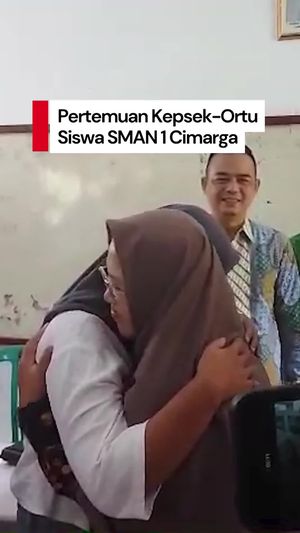 Kepala SMAN 1 Cimarga, Dini Fitri dan orang tua murid Tri Indah Alesti telah bertemu dan sepakat berdamai. Mediasi dilakukan di SMAN 1 Cimarga, Lebak, Banten.