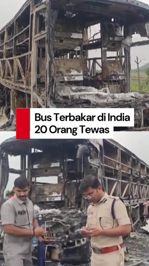 Satu unit bus pribadi terbakar akibat kebocoran tangki bahan bakar di jalur antarkota Bangaluru-Hyderabad. Akibat insiden ini 20 dari 41 orang penumpang tewas.