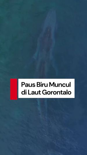 Heboh di media sosial kemunculan paus biru sepanjang 20 meter di laut Teluk Tomini, Bone Bolango, Gorontalo. Hewan yang dilindungi dan nyaris punah itu terlihat oleh warga sekitar.