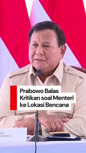 Presiden Prabowo Subianto membalas ada pihak yang mengkritik menterinya datang ke lokasi bencana hanya melihat. Prabowo lantas mengatakan tugas menteri bukan untuk ‘macul’.