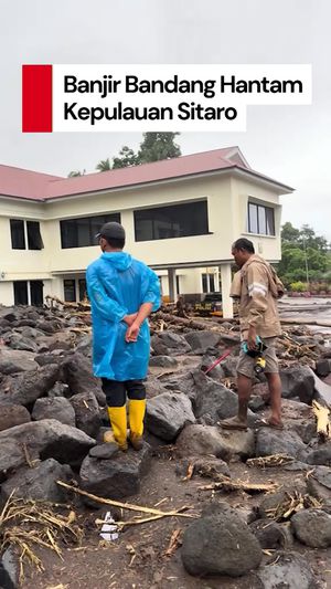 Banjir bandang menerjang Kabupaten Kepulauan Sitaro, Sulawesi Utara pada Senin (5/1) dini hari. Banjir ini melanda Kecamatan Siau Timur, Siau Timur Selatan, dan Siau Barat.
