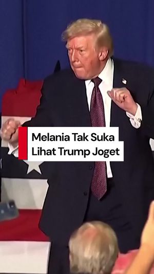 "Istri saya benci ketika saya melakukan ini (joget). Dia bilang itu sangat tidak pantas untuk seorang presiden," ucap Trump.