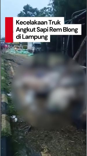 Video Truk Angkut Sapi Rem Blong di Lampung: 1 Orang Tewas, Sejumlah Sapi Mati